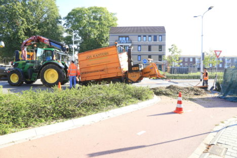 De rijbaan ter hoogte van de speeltuin werd korte tijd geblokkeerd. De aanhanger werd met een hijskraan overeind geholpen en het gemorste snoeiafval opgeruimd. Er raakte niemand gewond.