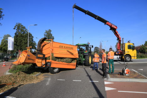 Gekantelde versnipperaar blokkeert rotonde