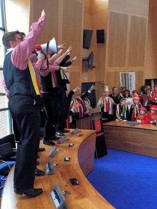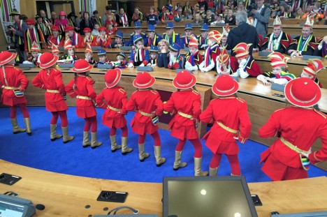 Een dolle boel in de raadszaal bij sleuteloverdracht aan stadsprins
