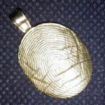 De eigenaar van de gouden hanger met vingerafdruk is nog steeds niet gevonden. Vandaar dat er nu tweede oproep wordt gedaan te achterhalen van wie deze hanger is die bijna 2 jaar geleden werd gevonden op het politiebureau. Achter op de hanger staat de datum ..-..-2005 vermeld zo liet wijkagent Monique van Lierop vanochtend weten. Zij maakte de onderstaande foto.