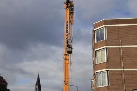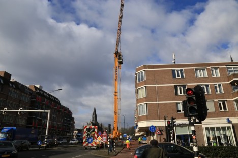 Met een grote hijskraan wordt vandaag een zendmast van T-Mobile verwijderd op de Kasteel-Traverse. Die mast staat nu nog op het appartementencomplex schuin tegenover het politiebureau. Met (hopelijk) de verplichte toestemming van de gemeente is een deel van de Traverse door de kraan geblokkeerd en zorgt daar voor enige verkeersoverlast. Die werkzaamheden duren naar verwachting tot plusminus 16 uur.