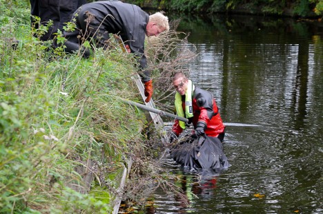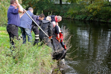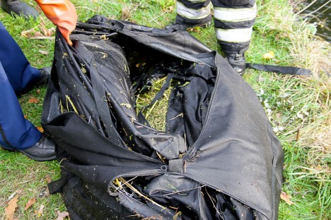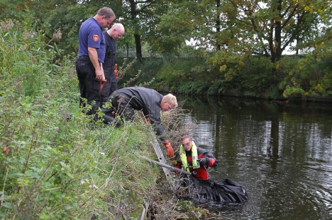 De politie en de brandweer hebben vanmiddag een grote tas met hennepafval uit het Eindhovens Kanaal gevist.