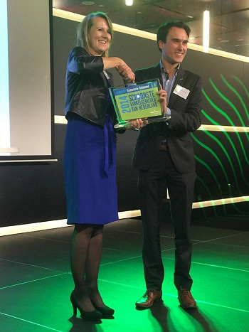 “Nederland Schoon reikt 3 prijzen uit, Helmond wint er 2 van! Op de foto met trotse beleidsmedewerker Adrie Donkers!” twitterde de trotse wethouder zojuist.