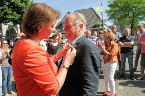 Net voor de start van de 25ste Truckers Day in Stiphout, werd Jan Martens zojuist benoemd tot Lid in de Orde van Oranje-Nassau. Burgemeester Elly Blanksma reikte deze koninklijke onderscheiding uit.