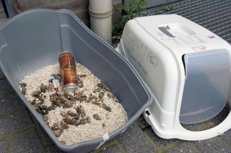 Buurtbewoners ofwel misschien de nieuwe bewoner van het pand waar de kat regelmatig in de tuin huist waren het beu, gezien de bijgevoegde uitwerpselen.