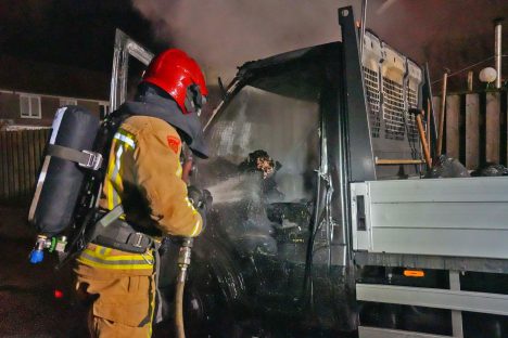 Op de Isidoor Opsomerenstraat ontstond vannacht rond 0.40 uur brand in een geparkeerde kleine vrachtwagen. Omdat zij net van een andere melding terug kwamen, waren de brandweerlieden snel ter plaatse in Helmond Noord. Zij konden de cabine die in lichterlaaie stond echter niet meer redden.