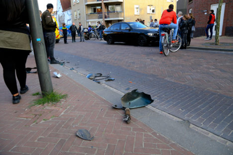Nou de auto reed niet hardt. Het was de scooter die op de auto reed en die daarna de vlucht op ging