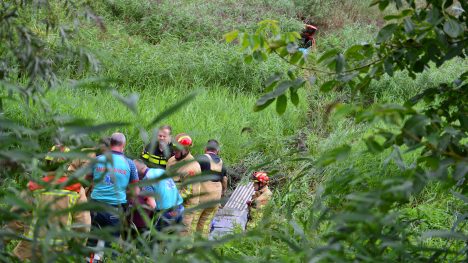 De grote uitdaging is nu om de auto te bergen. Aangezien de auto ongeveer 100 meter van de weg af ligt en het gebied moeilijk begaanbaar is wordt dit nog een uitdaging.