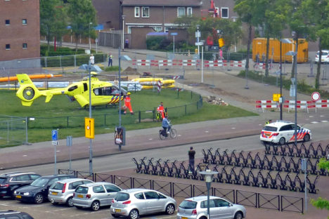 Behalve de andere hulpdiensten werd ook de traumahelikopter meteen opgeroepen. Die landde 5 minuten geleden in het nabijgelegen Havenpark waarna een gereedstaande politieauto 2 trauma-artsen ter plaatse bracht.