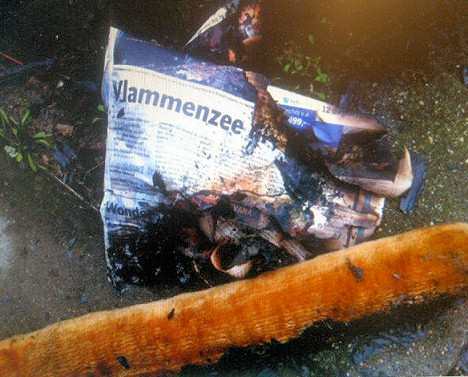 Francisca Kamphuis, ook wijkagent in de Rijpelberg, vulde dit bericht aan dat het baldadige kinderen waren die de krant met een opmerkelijke kop (zie derde foto) met vuurwerksterretje door de brievenbus duwden.