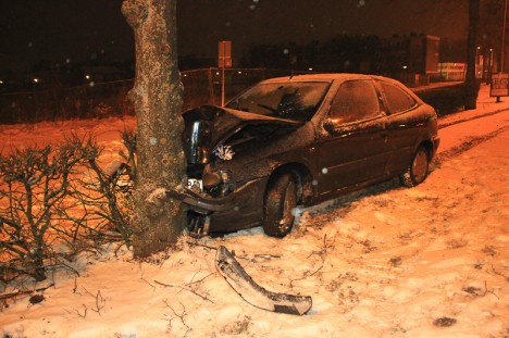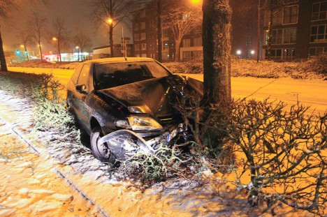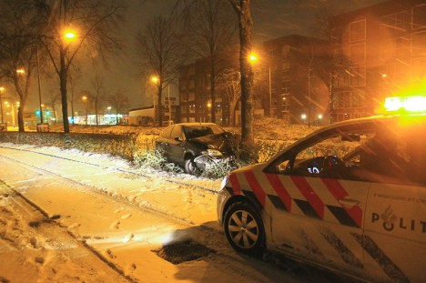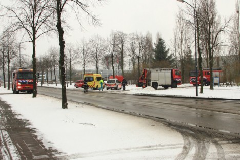 Zie de foto van de vrachtwagen in de benarde positie.