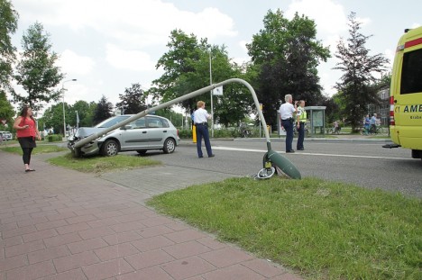 Bejaarde bestuurster rijdt lantaarnpaal aan gort