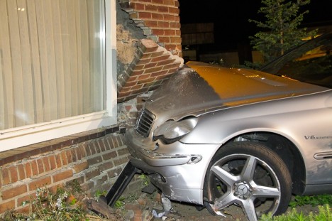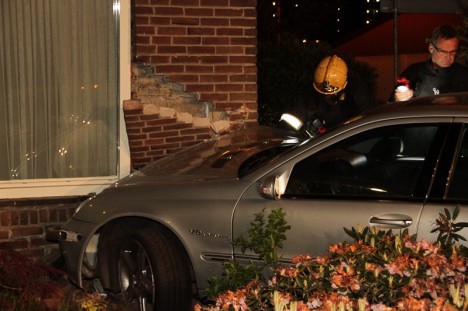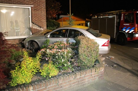 Kort na middernacht ramde een personenauto de voorgevel van een woning aan de Houtse Parallelweg in Mierlo-Hout. De Mercedes reed een muurtje omver, reed door het tuintje en kwam tegen de woning tot stilstand.