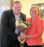 Op bijgaande foto (afkomstig van de VVD) feliciteert voorzitter Rob de Greef haar met haar lijsttrekkerschap.