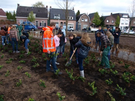 Dit jaar is gekozen om de leerlingen struiken te laten planten op het Willem Prinzenplein. Dit plein is 1 van de pleintjes die dit jaar opgeknapt worden in de Leonardusbuurt. De leerlingen plantten in totaal ruim 850 struiken.