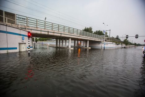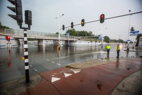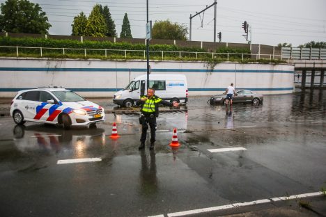 Gelukkig geen doden zoals die fietster in Zwolle, maar in Helmond waren we stevig de pineut. Er waren maar liefst 51 meldingen, bijna 10% van alle meldingen in Nederland. Die gingen over de badkuip, andere viaducten, kelders (die bij mijn buurman) en straten stonden blank.