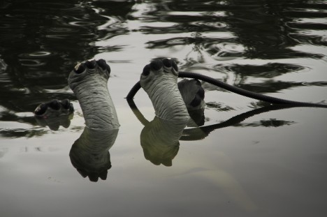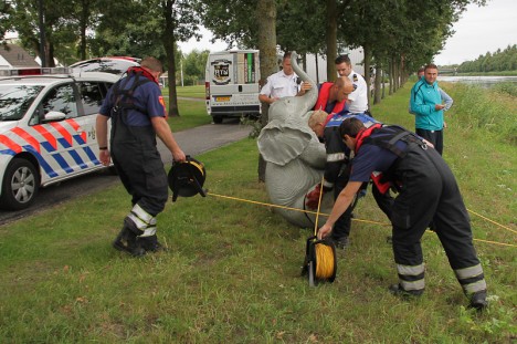 Hoe het dier te water is geraakt, is nog onduidelijk. Waarschijnlijk is het afkomstig uit een voortuin van een bedrijf. De politie stelt een onderzoek in.