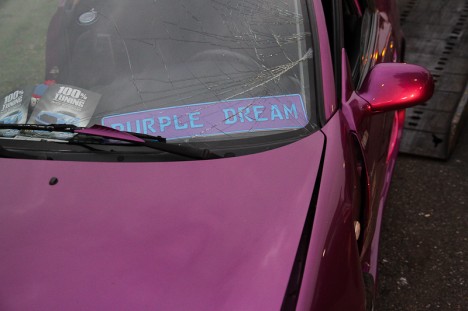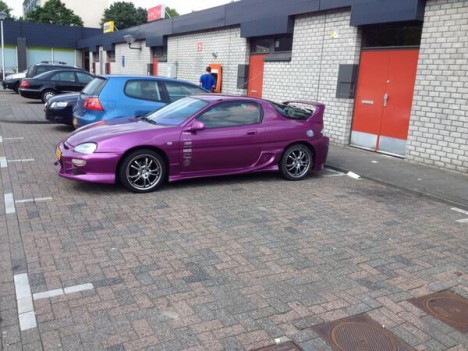 De eerder grplaatste foto is gemaakt op 5 juni in winkelcentrum De Bus.Er zat veel tijd en geld in deze paarse bolide. dat maakt de verzekering niet goed.