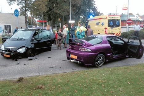 Deze aanrijding vanavond vond plaats bij de uitrit van de McDonald’s. Een auto die bij het restaurant de weg opreed, botste tegen een auto die op de Deltaweg reed. De jonge bestuurder van die paarse auto is met een ambulance naar het ziekenhuis gebracht. Hij was onder meer gewond aan het hoofd. Volgens de vader van het slachtoffer was de auto zijn lust en zijn leven.