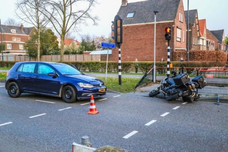 Vermoedelijk moest de politieauto ter hoogte van de oversteekplaats ergens voor uitwijken. Daarbij werd de motorrijder die langs de auto reed over het hoofd gezien en werd de jongeman op de motor aangereden. Hij belandde tegen het hekwerk van de oversteekplaats. Met onbekende verwondingen is hij met een ambulance naar het ziekenhuis gebracht.