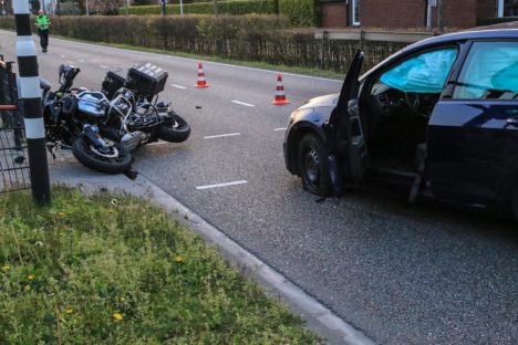 Een onopvallend politieauto en een motor kwamen in het begin van de avond in botsing met elkaar. De man die op de motor zat, raakte daarbij gewond.