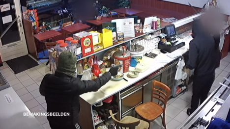 Op de beelden van de eerste overval op 2 november is te zien hoe de eigenaars wat koeltjes reageerden toen 2 jonge overvallers verschenen. Ze dachten dat het een Halloween-grap was. Zodra de daders doorhadden dat hun optreden weinig indruk maakte, gingen ze er snel vandoor.