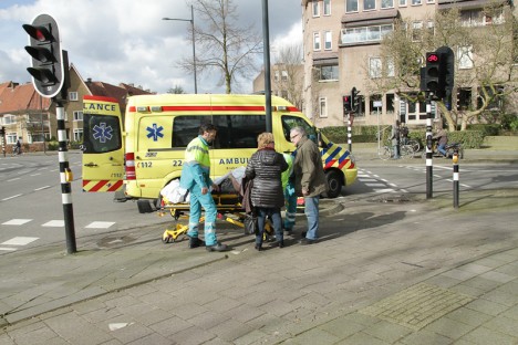 Net nadat de vrouw de weg was overgestoken, kwam zij vermoedelijk met haar scootmobiel tegen de stoeprand. De vrouw en haar voertuig vielen om en zij kreeg daarbij het voertuig op zich. Omstanders hebben de vrouw geholpen en een ambulance heeft haar vervolgens met verwondingen aan de heup naar het ziekenhuis gebracht.