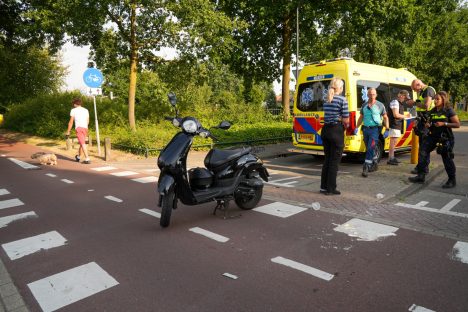 Een scooterrijder die op een fietspad reed, kwam vanavond op een oversteekplaats met de Rijnlaan in botsing met een auto. De hulpdiensten werden om 18.35 uur gealarmeerd voor dit ongeluk.