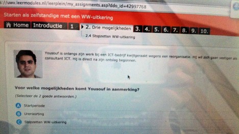Er staat nergens dat ‘Yousouf’ nog of überhaupt staat ingeschreven als werkzoekende bij het UVW, alleen dat hij direct na zijn ontslag gestart is met zijn bedrijf… dus hoezo zijn er dan twee vragen goed van de drie?