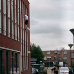 Een 51-jarige Helmonder in geestelijke nood sloeg vanmiddag zijn gehele inboedel kort en klein. Vervolgens leek hij uit het raam te willen springen van zijn appartement aan De Waart in het centrum. Ook de brandweer rukte uit om assistentie te verlenen.