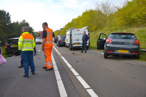 Bij een aanrijding op de Wolfsputter Baan (N279) vanmiddag rond 17.20 uur waren meerdere voertuigen betrokken. Een automobilist zag de file over het hoofd en botste tegen de achterste auto. Deze belandt daardoor op de andere weghelft waar die personenauto geramd wordt door een vrachtwagen. Doordat de vrachtwagen deels heeft kunnen uitwijken, kon de bestuurster zonder letsel uit haar voertuig stappen. Ze is wel in de ambulance nagekeken. De weg is tijdelijk afgesloten.