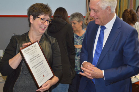 Mary-Ann van Bokhoven van Jeugdvereniging ‘De Vonk’ heeft voor haar jarenlange inzet de vrijwilligerspenning van de gemeente ontvangen. Wethouder Frans Stienen reikte de onderscheiding zaterdagmiddag uit tijdens de receptie ter gelegenheid van de viering van het 40-jarig bestaan van deze vereniging.