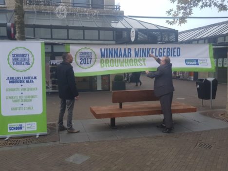 Gerrit Bouwmeester, voorzitter winkeliersvereniging Brouwhorst: “Ik was al heel trots op de nominatie van ons winkelcentrum. Nu we de prijs voor het schoonste winkelcentrum van Nederland ook echt gewonnen hebben, loop ik bijna naast mijn schoenen! We hebben er met z’n allen hard voor gewerkt om ons winkelcentrum schoon, veilig en aantrekkelijk voor onze klanten te maken en te houden. We hebben hier elke dag iemand rondlopen die de boel schoonhoudt en kleine reparaties verricht. Dat dagelijks bijhouden is ontzettend belangrijk. Want hoe schoner de omgeving, hoe meer mensen geneigd zijn om die sigaret of dat papiertje in de prullenbak te gooien in plaats van op de grond te laten vallen. Dus een grote ‘dank je wel’ voor iedereen die zich hiervoor heeft ingezet!”