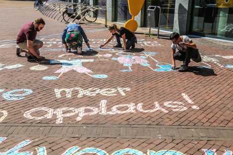 Wat een geweldig leuke actie. Zag jullie straks bezig, wat een vlijt. Ik zag ook al jullie fotografen en dacht wat doen die daar allemaal. Maar nu weet ik ook waarvoor het is. Pluimpje voor stoepkrijters.