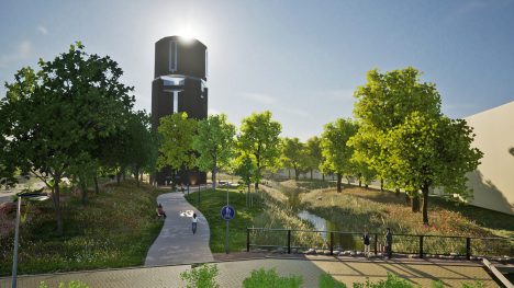 De watertoren is momenteel nog in gebruik en er zijn, zo laat de gemeente weten, daarom ook geen plannen voor een ontwikkeling in deze. Door aangelicht te worden, gaat die toren wel een centrale rol spelen in het park. Hier zie je hoe die watertoren er vruuger uitzag.