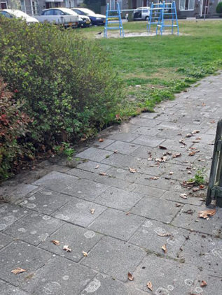 Onkruid tussen tegels laten ze staan, terwijl het tegen perkje aan zit wat wel gedaan wordt. Ziet er regelmatig niet uit!