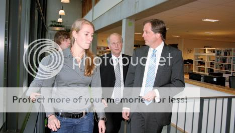 Op de foto hieronder: leerlingen Kelsy en Bart mochten Pechtold rondleiden door hun school.