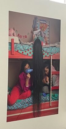 Een foto, beneden in de hal, daar staat een meisje op van 12 jaar. Zij heeft het langste haar, dat ik ooit zag. Het is haar identiteit. De reden waarom haar haar zo lang is, staat op de kaartjes bij de foto’s. Die je echt zelf wil bekijken en lezen. Deze foto liet mij glimlachen. Ik herkende mijn dochter er een beetje in. Die er niet van houdt wanneer haar haren worden uitgekamd. Of wanneer er een vlecht wordt gemaakt. Ik zag in gedachten de ouders stoeien met de knopen. En de manier waarop de fotograaf dit verhaal heeft vastgelegd is erg mooi.