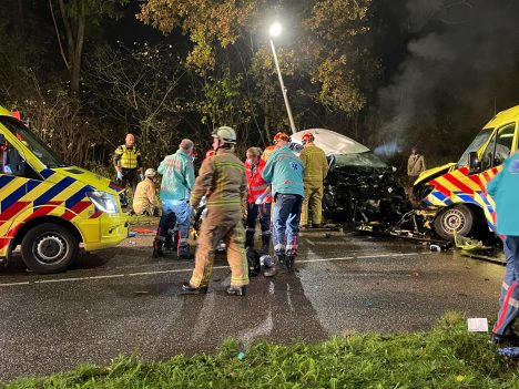 De voertuigen botsten rond 00.15 uur door nog onbekende oorzaak frontaal op elkaar. Specialisten van de politie doen ter plaatse (sporen) onderzoek naar de aanrijding. De plaats van het ongeval is afgezet. Beide voertuigen zijn nvoor nader onderzoek in beslag genomen en worden weg getakeld.